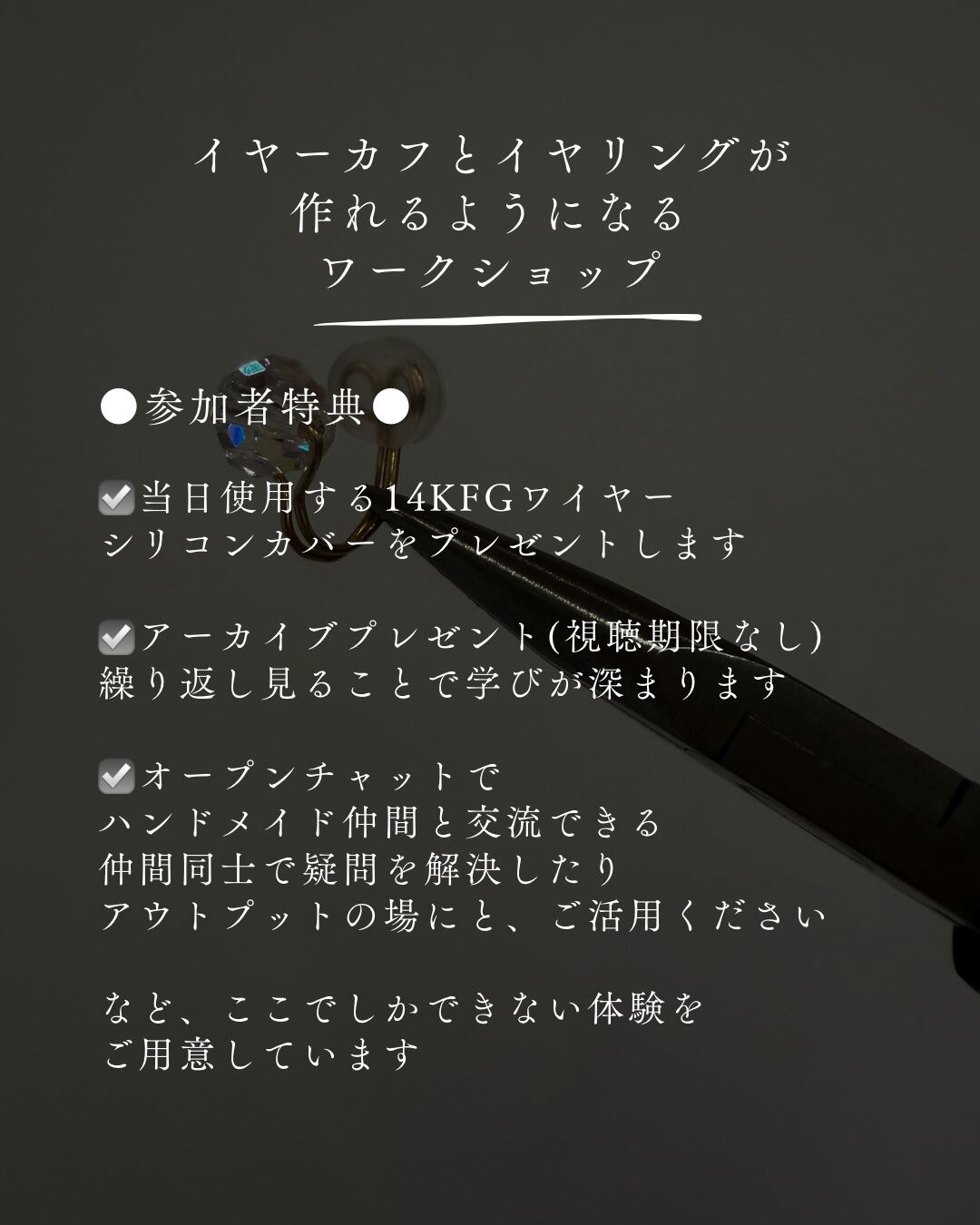 イヤーカフ、イヤリングの作り方レクチャー